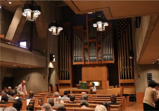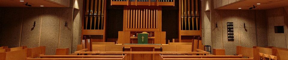 鐘の音が礼拝の始まりを知らせます。オルガン奏楽が始まり、説教者と司式者が講壇に上がります。